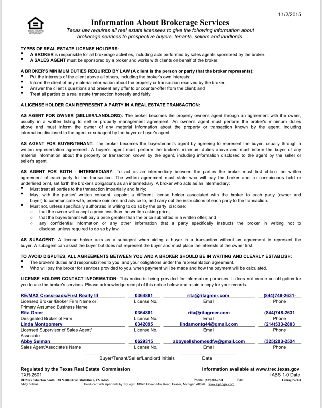 It is an honor to assist you with your Real Estate needs. Before asking me about a property please click on the link below which explains how Brokerage Services works in Texas.